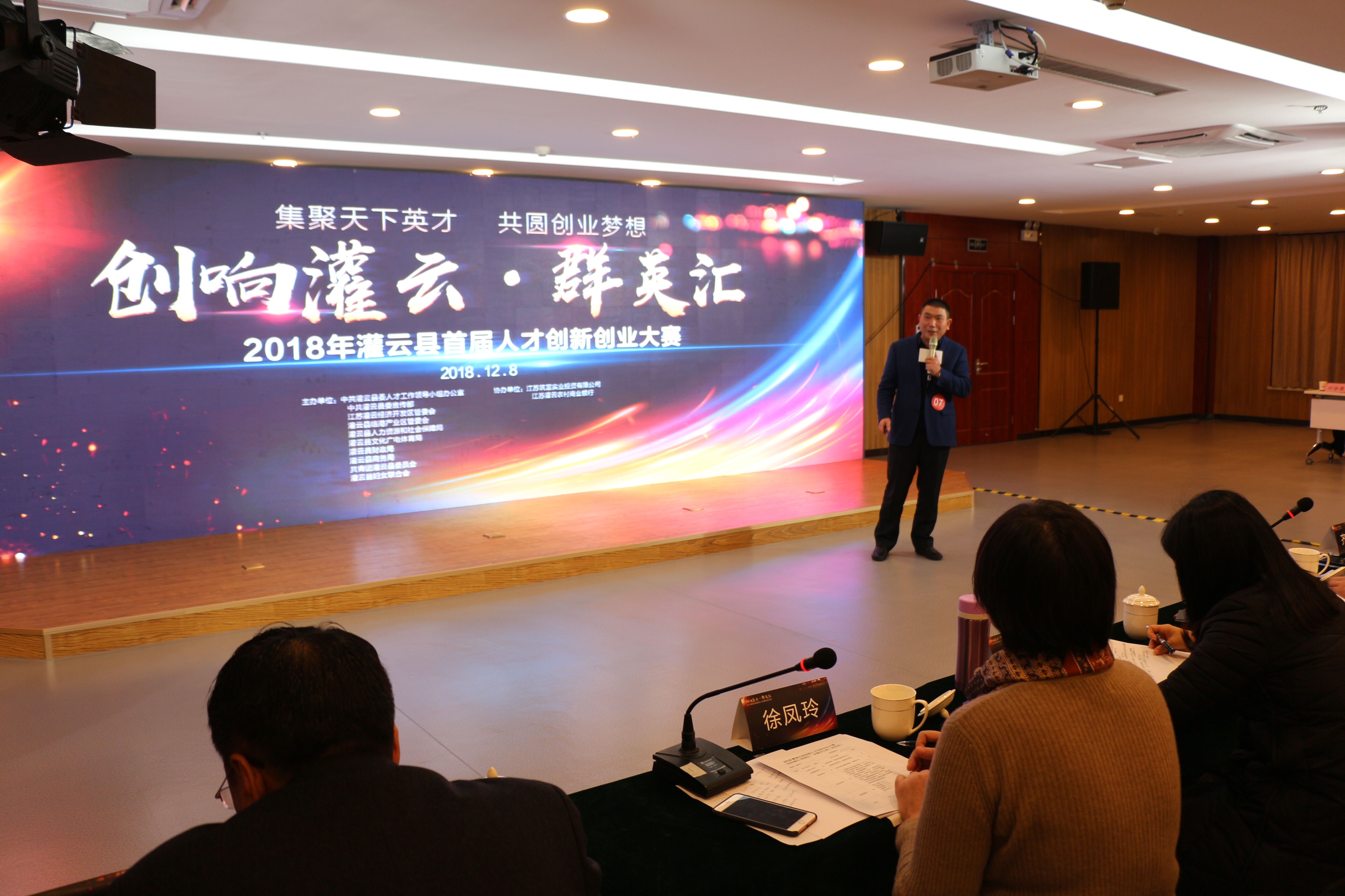 集聚天下英才,共圓創業夢想,2018年灌云縣首屆主題為“創響灌云、群英匯”人才創新創業大賽,于2018年12月8日下午,在灌云經濟開發區中小企業園綜合辦公樓三樓隆重舉行。比賽分為成長組和孵化組兩個級別,江蘇科倫多食品配料有限公司董事長、總經理封寬裕同志參加了成長組的比賽,現場比賽過程精彩絕倫,高潮迭起,引起觀眾們陣陣掌聲,經過激烈的角逐,江蘇科倫多食品配料有限公司董事長、總經理封寬裕同志榮獲成長組冠軍。圖為比賽時的場景圖片。