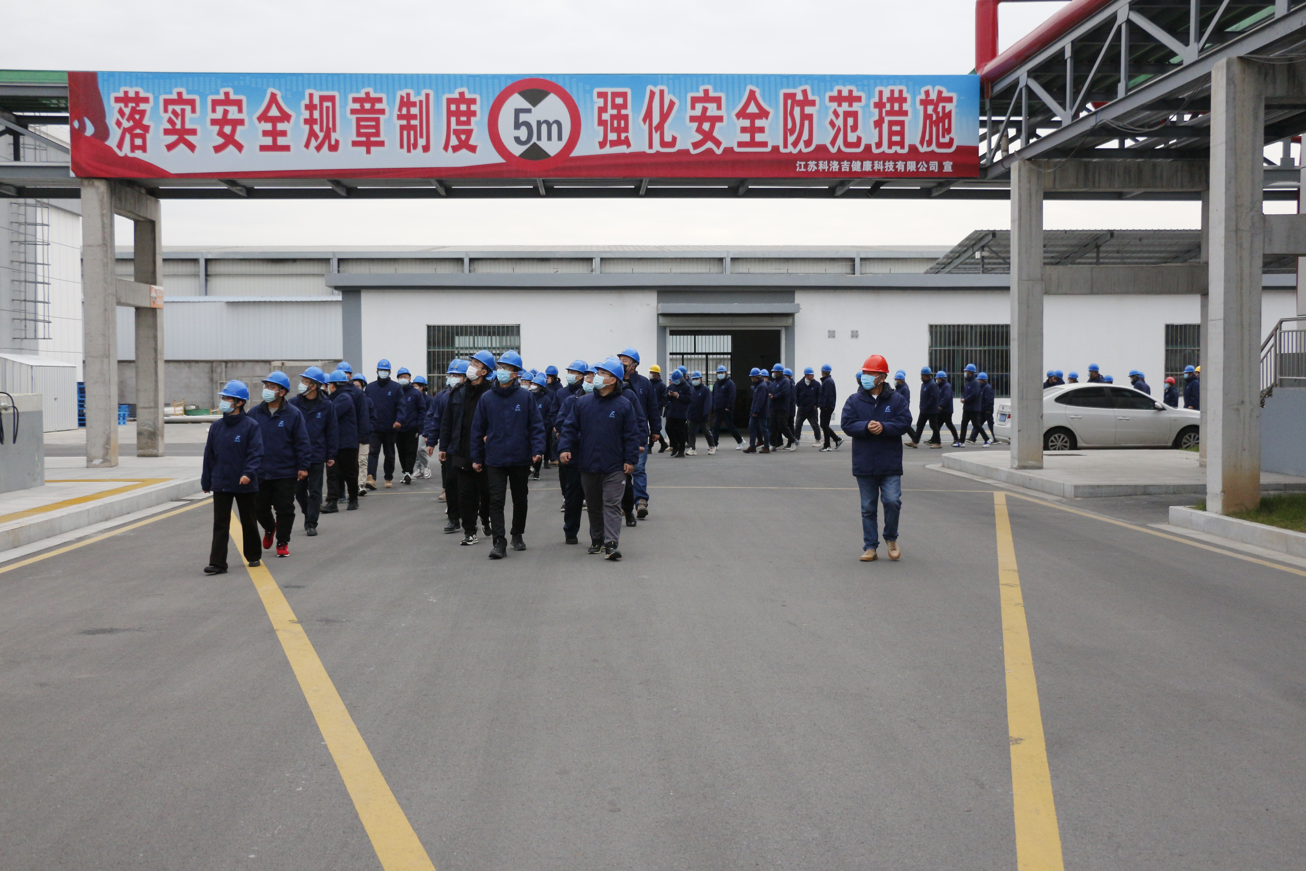 董事長封寬裕先生率領全體參會人員到集團子公司——江蘇科洛吉健康科技有限公司觀摩。走在寬闊平坦的廠區大道,滿目皆新。充滿人文關懷的職工浴室、忙碌又有序的生產車間、熱火朝天的在建項目施工現場,呈現出一派欣欣向榮的景象。