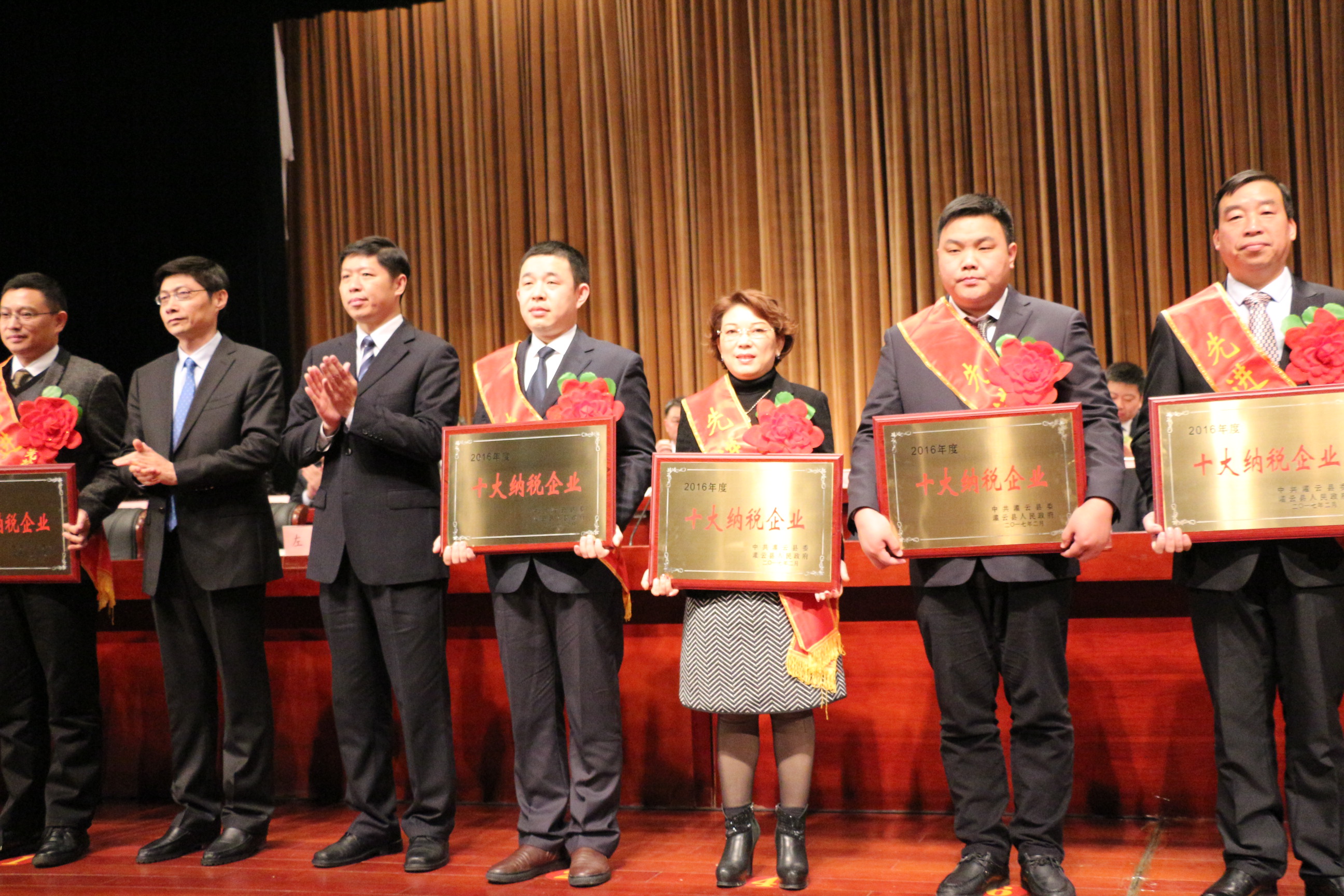 2017年2月4日,新年上班第一天,灌云縣政府所有機關單位召開全縣會議,對2016年度先進代表進行表彰。公司以開發區第一、全縣第四的納稅額被授予“2016年度十大納稅企業”,總經理翁京蓉女士代表公司參加授獎儀式。